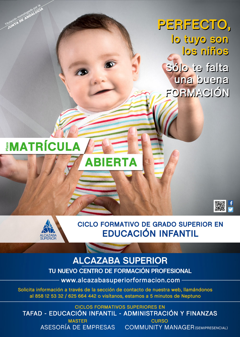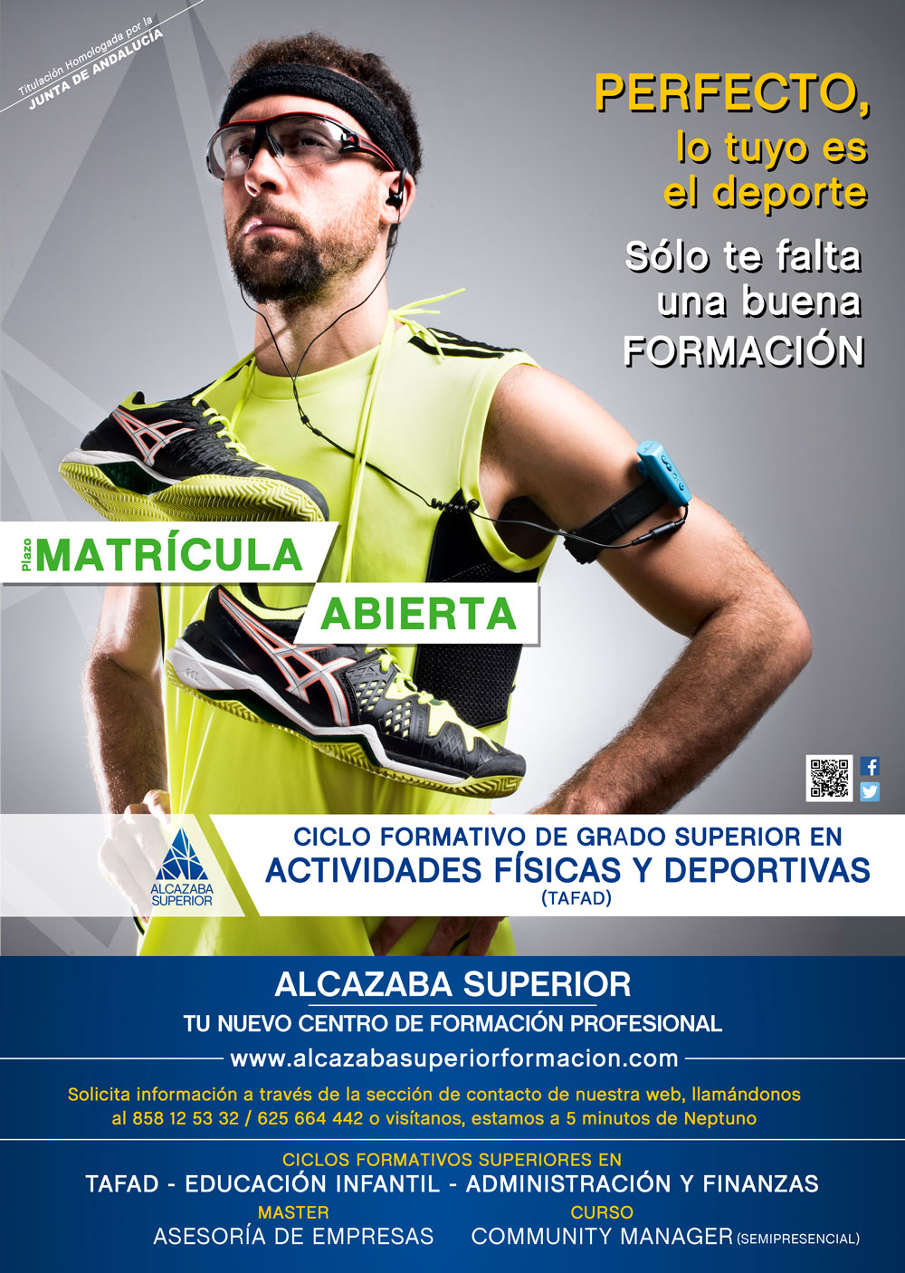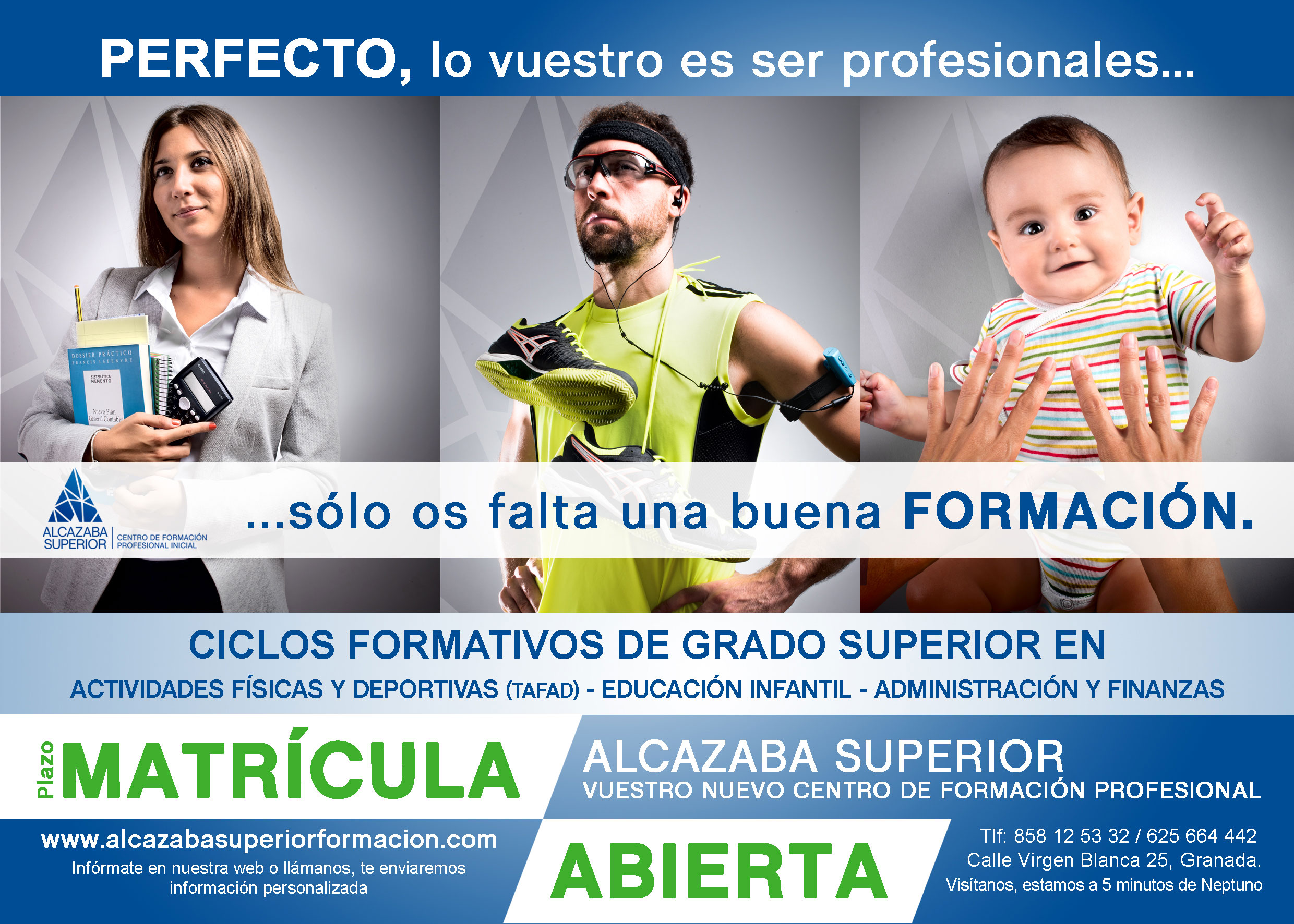 Fotografías para la campaña de lanzamiento del Centro de Formación Profesional Alcazaba SUperior en Granada. Fotografía de estudio publicitaria. Diseño de Carteleria e Impresión.